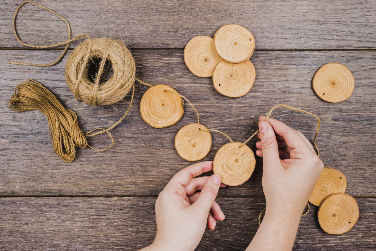 - Accessoires : perles en bois, boutons, fleurs artificielles ou feuilles séchées
